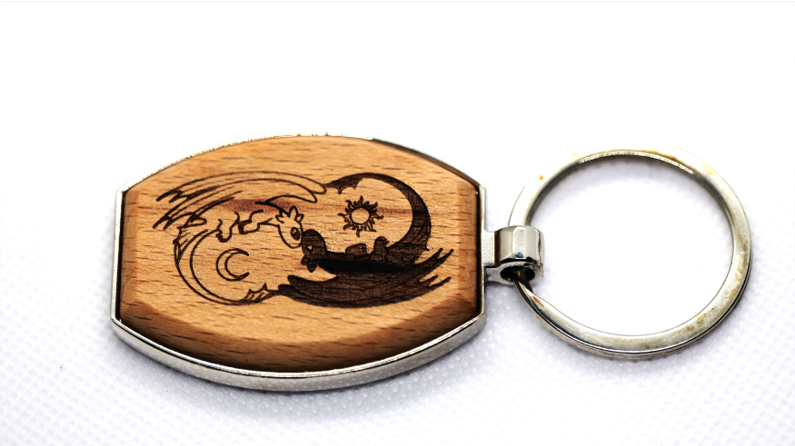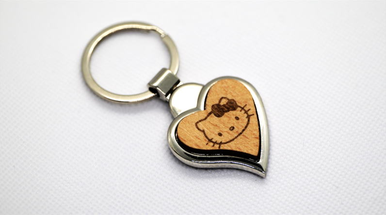 木質和金屬-愛心型雙面吊飾